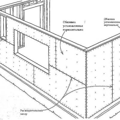 Установлены внутренние стены и обшиты с одной стороны OSB. Для удержания внутренней стены на месте, её связывают временно прибитой доской.