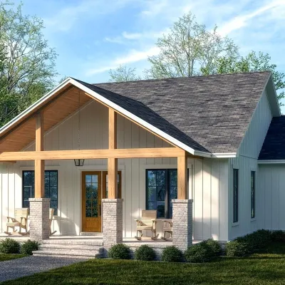 Plan V-3659: One-story 3 Bed House Plan With Columns on Front Porch