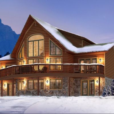 План каркасного дома с большими окнами до пола