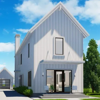 Mirror reverse- There are two bedrooms, one bathroom, and 1,164 square feet of heated living space in this two-story house plan with a Scandinavian influence.