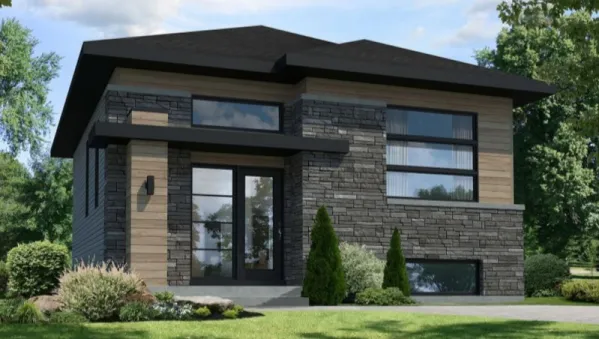 This home perfectly suited for a narrow lot. This contemporary house facade has panoramic windows and faced with brick, horizontal siding, stucco. A hip roof completes the look of this house. Designed…
