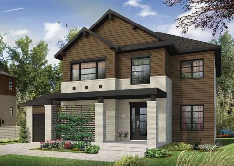 Plan DR-22365-2-3: Two-story 3 Bed Modern House Plan For Narrow Lot