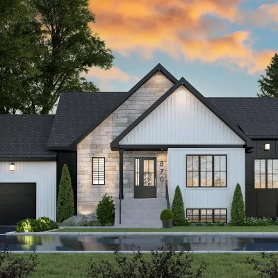 - The main-level master suite comes with a walk-in closet and a private bathroom. A mudroom with a designated laundry area adds a practical touch while keeping your living spaces neat and organised.