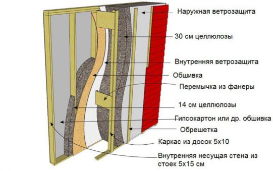 "Арктическая стена" это воздухопроницаемая стена с двойным каркасом, использующая целлюлозный утеплитель и позволяющая водяному пару проходить через стену.