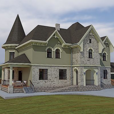 Plan DR-21456-2-4: Two-story 4 Bed House Plan in French Castle style