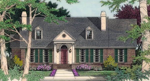 Plan MM-1021-1-3: One-story 3 Bed French Countryside House Plan With Brick Facade