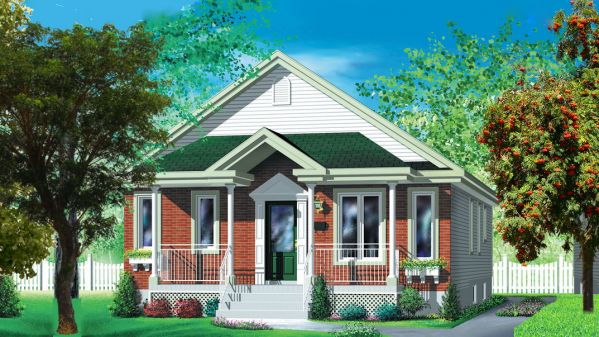 This cute one-story cottage is suitable for a narrow lot. Beautiful gables adorn the facade of the house. The house is built with a daylight basement. The layout of the house is very comfortable…