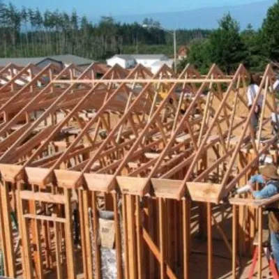 Если под серединой пролета стропил нет несущей стены, прибейте ригель под прямым углом к стропилам и установите 50×100 мм подкос от ближайшей несущей параллельной стены под углом не превышающем 45°. К каждому подкосу прибивается блок, который помогает удерживать подкос на месте. Подкосы и стойки обычно устанавливаются каждые 120 см. Балки большего сечения, такие как 50×300 мм, нуждаются в меньшем количестве подпорок. Когда нужно установить составную балку для длинной крыши, перехлестните их как минимум на 120 см и сбейте их вместе пятью 90 мм гвоздями.