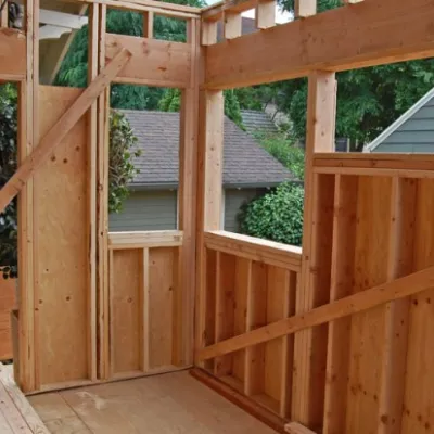 Обшивка стен может выполнять несколько различных функций. Она обеспечивает как боковую прочность, таким образом снимая необходимость в укосинах, так и вертикально-осевую прочность. Она удерживает тепло в доме и защищает стены от сильного ветра.