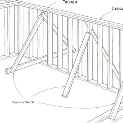 Стойки скошенной стены должны быть сделаны из целой доски от нижней до верхней обвязки, потому что кафедральный потолок не будет иметь потолочных лаг, идущих на высоте 250 см, чтобы помочь укрепить стену, особенно против давления ветра, как у обычной стены. Если стена выше 420 см, то большинство норм требуют, чтобы она была сделана из досок большего сечения или сдвоенных досок.