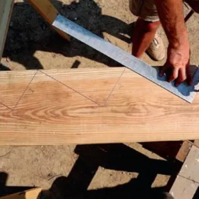 - Затем начертите линию вдоль навесной доски ниже площадки на высоту одного подъема.