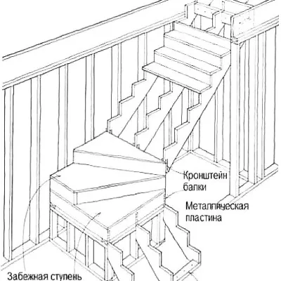 В первом способе можно использовать стальные полосы длиной от 45 до 60 см, которые прибиваются к заднему верхнему ребру косоура и затем загибаются вокруг косоура так,